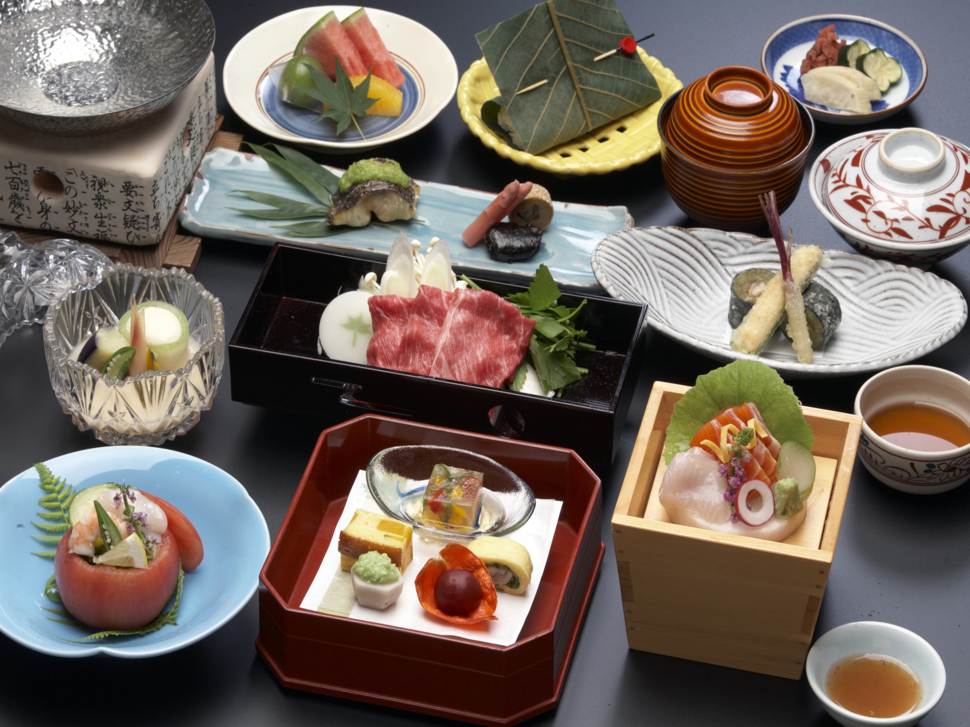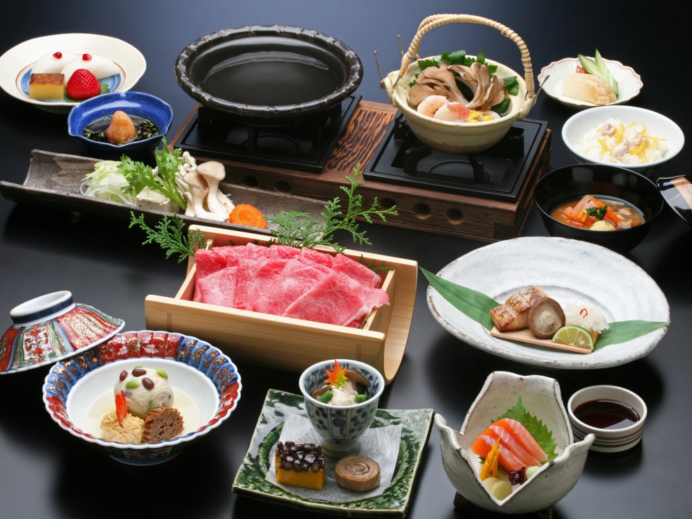 ご夕食は飛騨牛最高のA5等級ステーキを含む和食会席。
